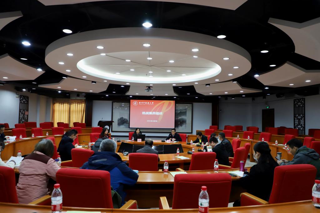 近日,中共中央印发了修订后的《必赢565net官网统一战线工作条例》。为全面准确学习领会党的统战理论方针政策,1月8日上午,学校党委统战部在办公楼101会议室举行统战委员理论培训,特邀广东省社会主义学院广东文化工作部主任冯颖红教授做报告。会议由学校党委宣传部、统战部部长郑维群主持。全校各二级单位党委(党总支)、直属党支部统战委员参加了培训。