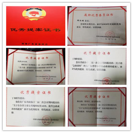在大会宣布的《关于表彰2020年优秀提案、履职优秀委员的决定》,我校邱灼雄委员被评为2020年度履职优秀委员;黄斌委员提出《关于进一步发挥中医药在预防保健方面作用》的提案被评为优秀提案;丁邦晗委员提出《关于将“急救课程”列为广东省中小学的必修课程》和《关于在全省主要公共场所配置AED,提升急救成功率》的两个提案被评为优秀提案;赵先明委员提出《关于完善社会养老服务体系的系列提案》被评为优秀提案。
