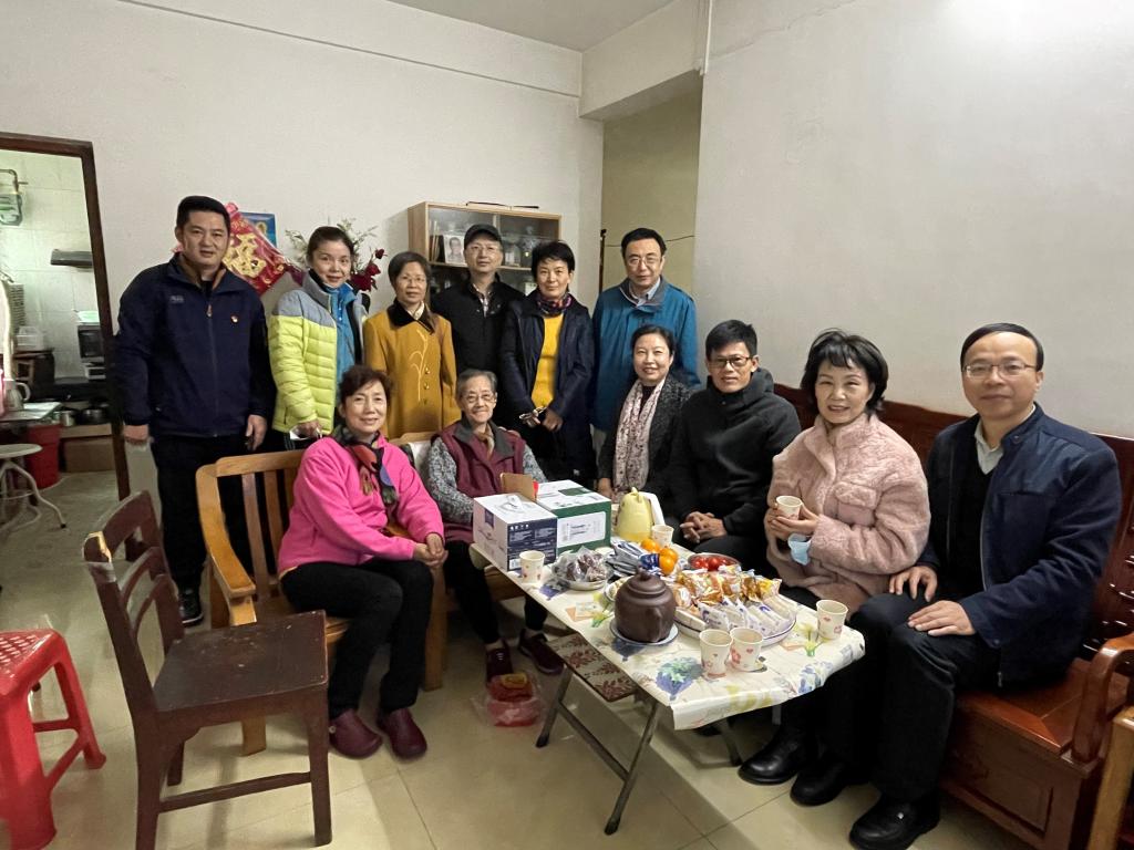 大家与老社员们亲切交谈,关心询问他们的健康状况,细致了解他们在疫情防控状态下的生活需求,并叮嘱他们保重身体。老社员纷纷回忆起了自己奋战于教育科研一线的往事,向大家分享了自己的宝贵经验和经历,老龄社员们表示虽然已经退休离开岗位,但将一如既往地关心、支持学校和九三基层委的发展。