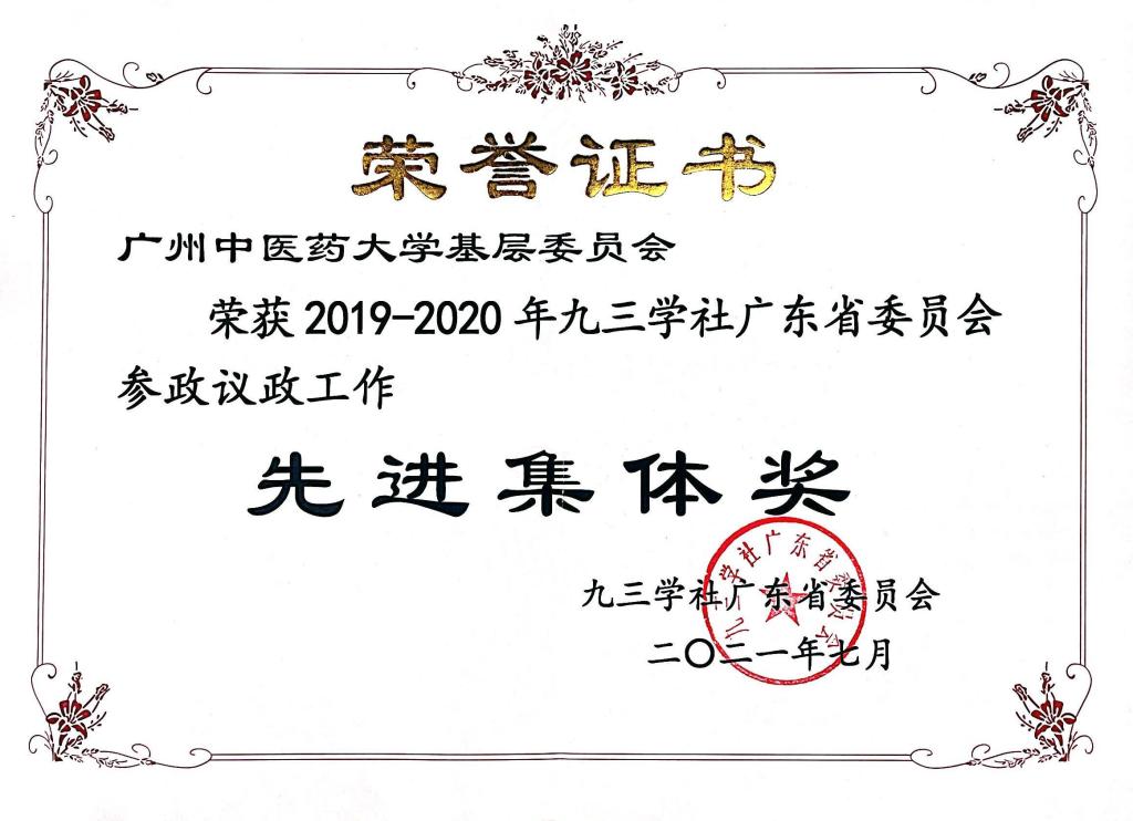同时,我校九三学社基层委一直以来以积极建言献策,做好参政议政工作为己任,据“粤社发[2021]30号”文件通知,九三学社必赢565net官网基层委被评选为“2019-2020年九三学社广东省委员会参政议政工作先进集体”。