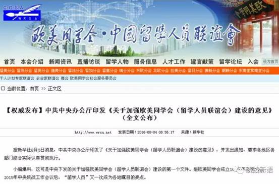4.中央出台《关于加强欧美同学会(留学人员联谊会)建设的意见》